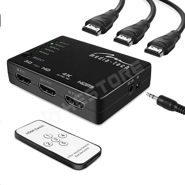 Media-Tech MT5207, 5 portos, HDMI Switch, 4K