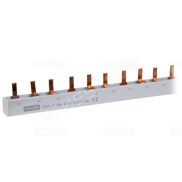 Sorolósín (fésűs fázis sín), 3 fázisú, max. 63A, 12 modulhoz, csapos kivitel