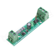 - A PLC bemenetre csatlakoztatva a PLC COM vége a tápegységhez csatlakozik, a 24V bemeneti vége a kártya OUT jelkimenetéhez, az optocsatoló kártyán a GND pedig a tápegység negatív pólusához csatlakozik