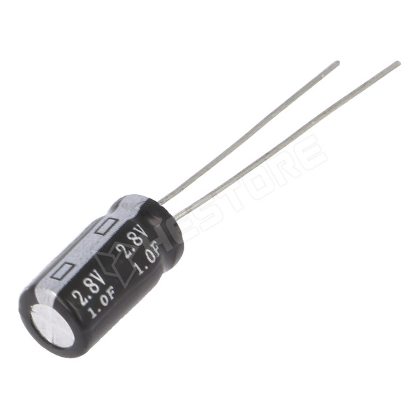 Kondenzátor, szuperkondenzátor, 1F, 2.8V DC, 2.5mm, Ø6.3x12mm, -40...65°C
