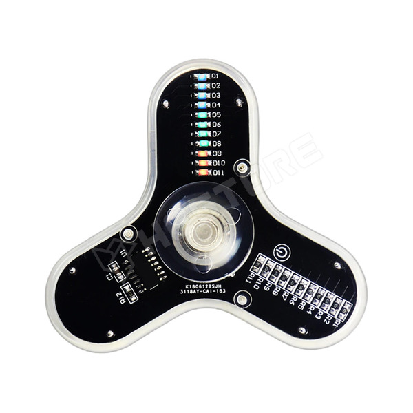 A TRI-SPIN készletből egy RGB SMD LED-es fidget spinner építhető, mely a megfelelő súlyelosztásnak, és a golyóscsapágynak köszönhetően nagyon sokáig tud forogni rázkódás nélkül. Az asztalon vagy akár kézben is pörgethető, és eközben sokféle színes minta rajzolódik ki rajta váltakozva. Szép és érdekes KIT a barkács rajongók számára.