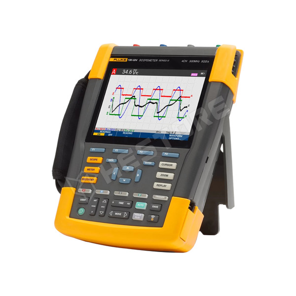| Mérőműszer tulajdonságai | ütésálló ház (holster), mérés kurzorok segítségével, matematikai funkciók: összeadás, kivonás, szorzás és FFT, FFT analízis, valós idejű óra, szigetelt bemenetek, por- és cseppálló, zoom a jel meghatározott részére, Conect-and-View funkció: stabil, valós és reprodukálható jelábrázolás operátor közreműködése nélkül, hullámforma trenddiagram függvény |