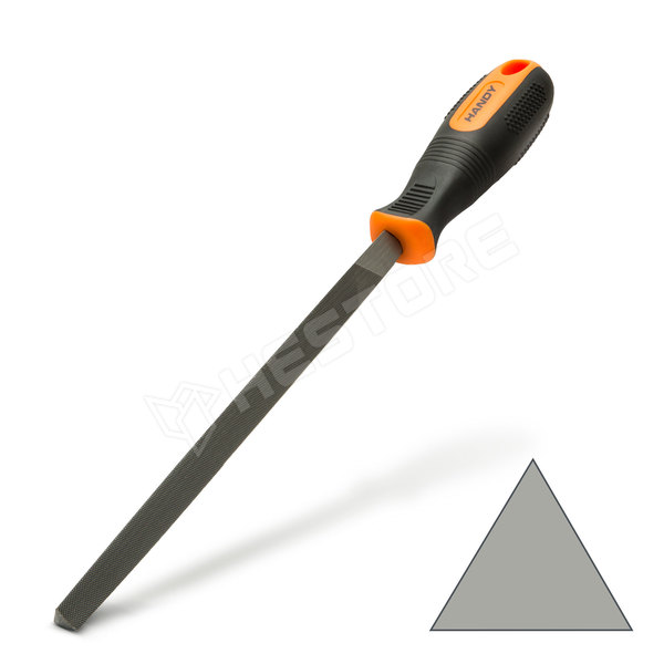 Minőségi, 200 mm hosszú, gumírozott nyelű reszelő. Háromszög alakú, edzett, kétszeres metszésű reszelőlappal, amely kiválóan használható faanyagokhoz és fémekhez. Az ergonómikus gumírozott nyél biztosítja a kényelmes fogást és a biztonságot a munkavégzés során. Tökéletes választás, ha éles sarkokat, vágáséleket kell reszelni.