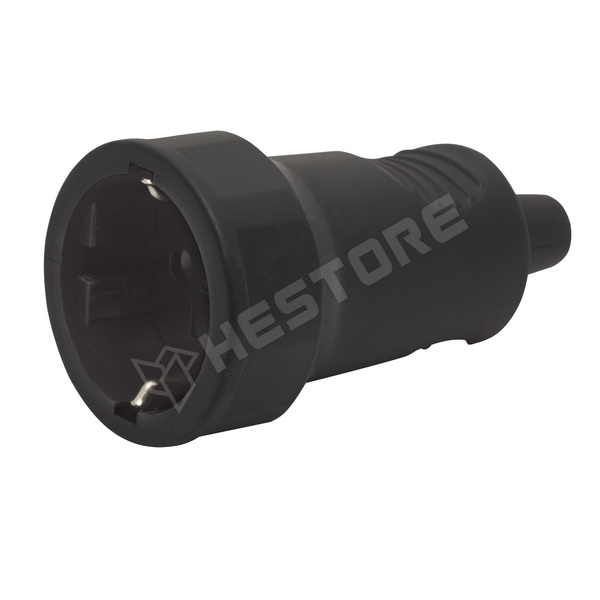 Rubber plug, black, straight, 16A, with screw clamp, max. 250V