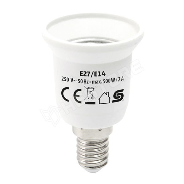 Az E27/E14 típusú foglalat átalakító lehetővé teszi az E27-es fényforrások használatát az E14-es foglalatokban.