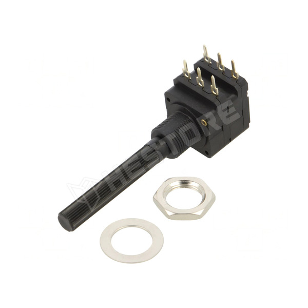 Potenciométer, axiális, 200kΩ, 200mW, THT, 6mm, műanyag, sztereó, lineáris