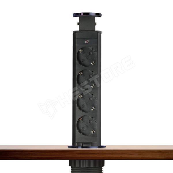 Süllyeszthető elosztó irodai és otthoni felhasználásra, fém házzal, 4 db gyermekvédelemmel ellátott aljzattal. Asztala, bútora legyen mindig elegáns és rendezett, mégis funkcionális. A rejtett elosztó kiváló megoldás lehet ha már például kész konyhával rendelkezik, de nincs elegendő konnektor a kívánt helyen. Ilyenkor falvésés és villamos hálózat bővítés nélkül, remek alternatíva lehet egy rejtett elosztó. Egy mozdulat és máris rendelkezésre áll 4 szabad konnektor. Ideális lehet olyan elektromos eszközökhöz, amit nem folyamatosan használunk, kenyérpirító, vízforraló... Ha használaton kívül vannak, a "töltőoszlop" egy mozdulattal elrejthető, ezzel is megkönnyítve például a takarítást, valamint rendezett, letisztult külsőt ad a helységnek.