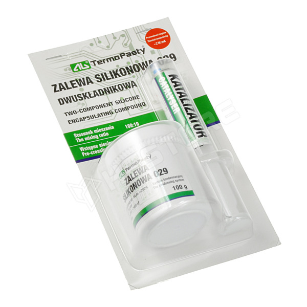 A termék folyékony kapszulázó vegyület, kétkomponensű, hővezető. A kikeményedés szobahőmérsékleten történik. Az anyag hővezető képességet és alacsony tágulást biztosít. Ideális fémházzal vagy hűtőbordával rendelkező hőtermelő elektronikai alkatrészek kapszulázására vagy hézagok kitöltésére. Kiváló folyékonysága van adagoláskor és kapszulázásakor. Kikeményedés után a ciklikus felmelegedés miatt nem válik le a felületről, amelyhez tapad. A kikeményedett termék érintésre száraz. Szobahőmérsékleten 24 óra alatt térhálósodik. 100:10 arányban keverendő. Keverés után 30-40 percig felhasználható.