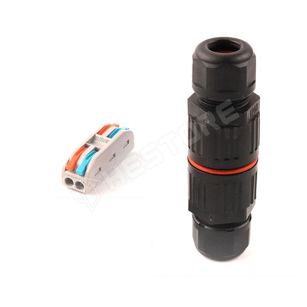 Rugós vezeték toldó, IP68 házzal, tömszelencével, 2P