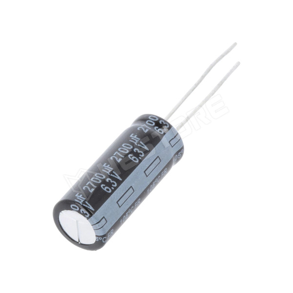 Kondenzátor, elektrolit, 2.7mF, 6.3V DC, 5mm, Ø10x25mm, -40...105°C