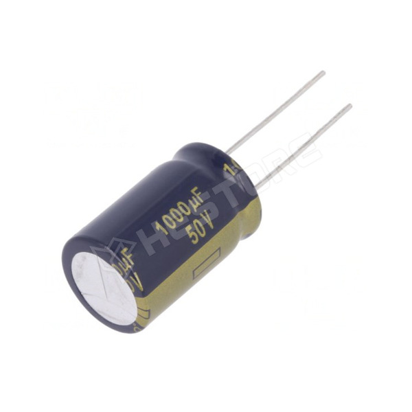 Kondenzátor, elektrolit, 1000µF, 50V DC, 7.5mm, alacsony impendancia, Ø16x25mm, -55...105°C