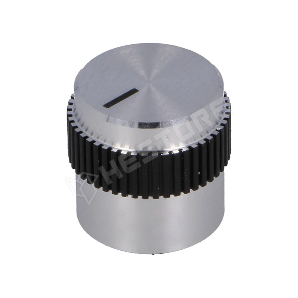 Forgatógomb, jelzéssel, alumínium, Ø6mm tengely, Ø15x15mm, szürke-fekete