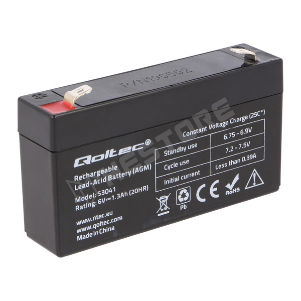 Savas-ólmos akkumulátor, 6V, 1.3Ah, AGM, karbantartást nem igényel