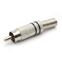 RCA csatlakozó, lengő, dugó, nikkelezett, fekete jel