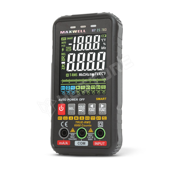 Nagyméretű, színes kijelzővel szerelt műszer, amelyről még napsütésben is könnyen leolvashatóak a mért értékek. A teljesen automata multiméter előnye, hogy a mérés során a készülék automatikusan felismeri melyik funkcióra van szükség és abban végzi el a mérést. Lehetősége van a kívánt funkciót kézzel is kiválasztani, ilyen esetben a csatlakozó körül világító LED fény segíti a mérőzsinórok helyes csatlakozását. A készülék hátoldalán található szenzor segítségével detektálhat feszültséget, anélkül, hogy megbontaná a kábelezést. A beépített munkalámpának köszönhetően szükség esetén megvilágíthatja a munkaterületet. Ergonomikus készülékház, kompakt méret és könnyű kezelhetőség jellemzi. A praktikus, keményfalú hordozótáska megvédi a terméket a szállítások alkalmával.