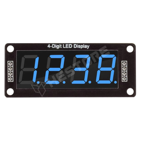 7-szegmenses kijelző modul, TM1637 soros vezérlő IC, 4 digit, 0.56", decimális pontok, kék