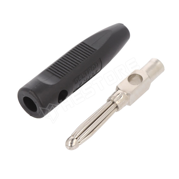 Banándugó 4mm-es keresztlyukkal, 16A, 50VDC, 2,5mm2, fekete