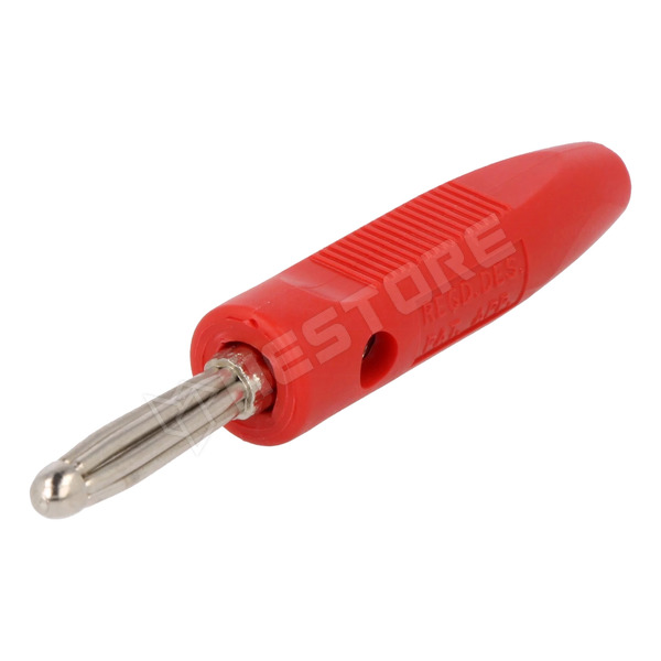 Banándugó 4mm-es keresztlyukkal, 16A, 50VDC, 2,5mm2, piros