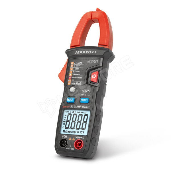 Automata multiméter lakatfogó egységgel, mely alkalmas váltóáram mérésre az áramkör megbontása nélkül. Ergonomikus készülékház, kompakt méret és könnyű kezelhetőség jellemzi. A praktikus hordozótáska megvédi a terméket a szállítások alkalmával.