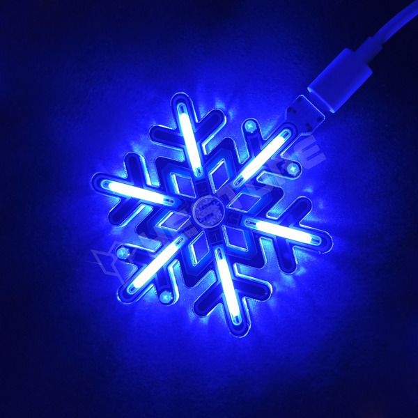 Világító hópihe dísz, USB-C, 5V DC, érintő kapcsoló, dimmelhető, akril burkolat, kék