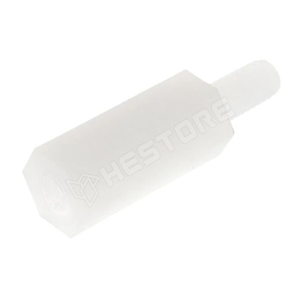 Plastic spacer, OI-type, M3, 10mm+6mm, white