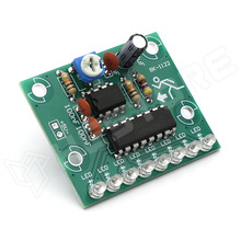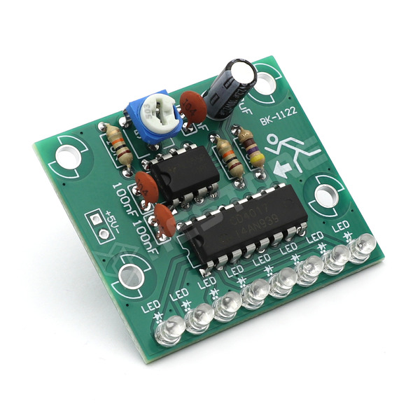 Az áramkör látványos futófény effektet hoz létre, és egymás után sorban felvillantja a LED-eket.