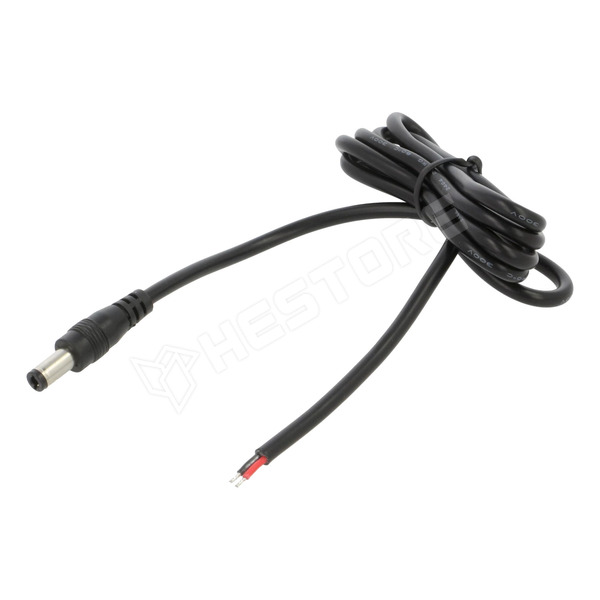 Tápegységdugó 1m vezetékkel, 2x0.5mm2, DC 5.5/2.5 dugó, egyenes, fekete