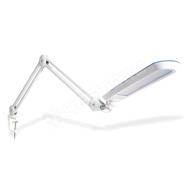 Világítsa be asztalát ezzel a nagyméretű, masszív kialakítású karos lámpával. A lámpa fém váza több helyen csuklóponttal rendelkezik, így tetszőleges magasságban és szögben állítható. A lámpa erős fényerejének köszönhetően akár nagyméretű asztalok bevilágítására is alkalmas. A fényerő 4 szinten állítható, így mindig beállíthatja az aktuális feladathoz szükséges fénymennyiséget. A lámpafej oldalán található világító díszcsík stílusos megjelenést kölcsönöz a világítótestnek, helyezze azt bármilyen enteriőrbe. Az állítható szorítóval rendelkező rögzítés garantálja, hogy a lámpa kompatibilis legyen a vastagabb asztallapokkal is, illetve, hogy stabilan az asztallap szélére legyen rögzítve, ezáltal nem foglal sok helyet az asztalon.