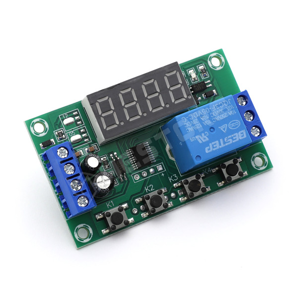 LED kijelzős programozható időzítő modul, 5V DC, optocsatolós vezérlő bemenet: 3.3...5V DC