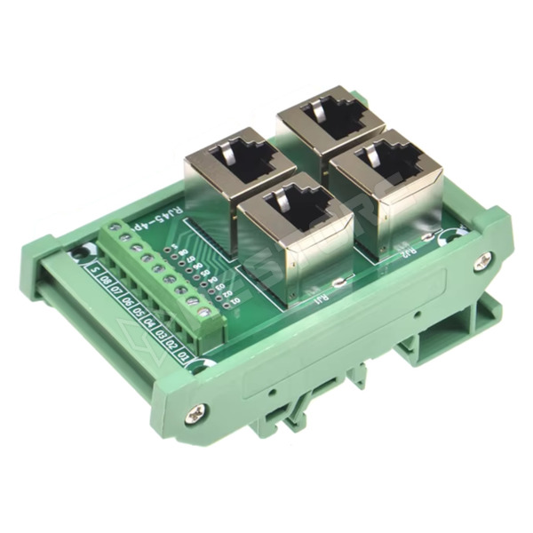 4 portos RJ45 elosztó, sorkapcsos kivezetéssel, árnyékolással, DIN sínre