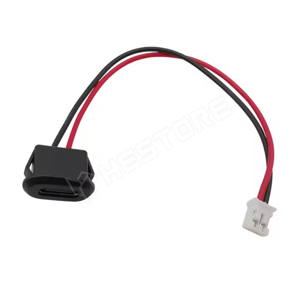 Bepattintható UCB Type-C aljzat tápvezetékkel, PH2.0 csatlakozóval, 10cm, fekete