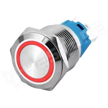 V12RMF-RD / Vandálbiztos nyomógomb, Ø12mm, 12...24V AC/DC piros LED gyűrű, SPST, OFF-(ON), 1 stabil pozíció, IP65