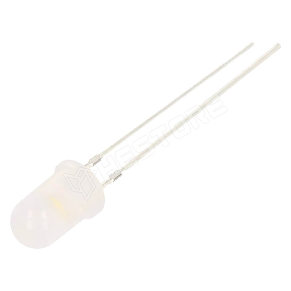 LED, 5mm, diffúz, meleg fehér, 3000K, 8400...10000mcd, 30°, 2.7...3.4V DC