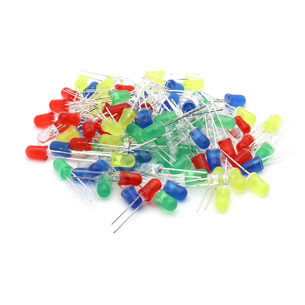 5mm-es LED csomag, 100db-os, piros, zöld, kék, fehér, sárga