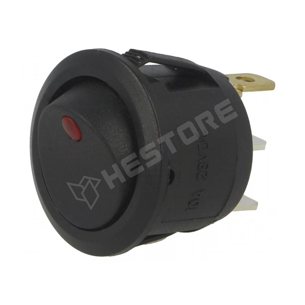 Billenő kapcsoló, SPST, ON-OFF, 6A,250VAC, fekete, piros 24V LED, kerek