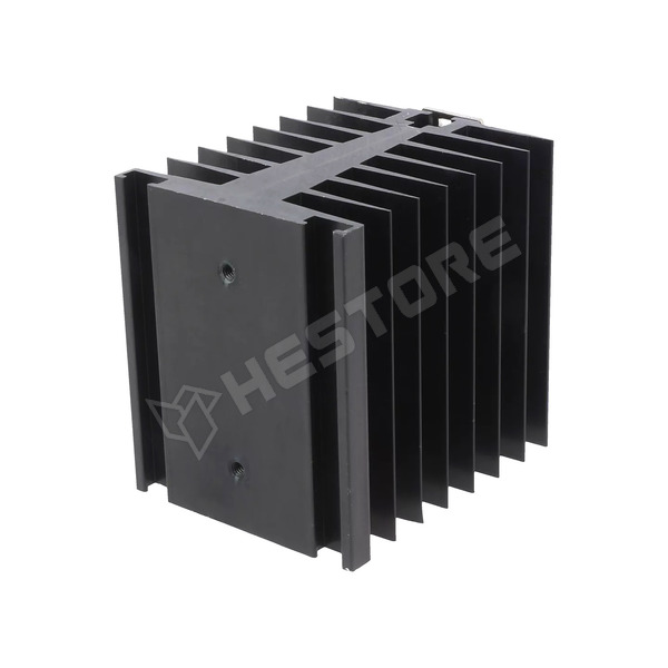 Hűtőborda egyfázisú szilárdtest relékhez, fekete eloxált alumínium, TS35 DIN-sínre, rugós sínrögzítővel