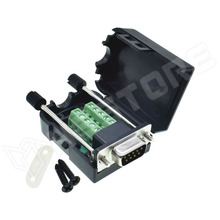 D-SUB9 kifejtő panel, sorkapcsos, 9P+GND, apa, RS232/RS485, rögzítő csavarokkal