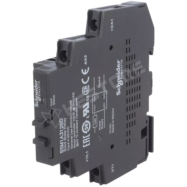 Szilárdtest relé (SSR), 1-fázisú, 12A, 4...32V DC, 48...600V AC, nullátmenetnél kapcsol, DIN sínre