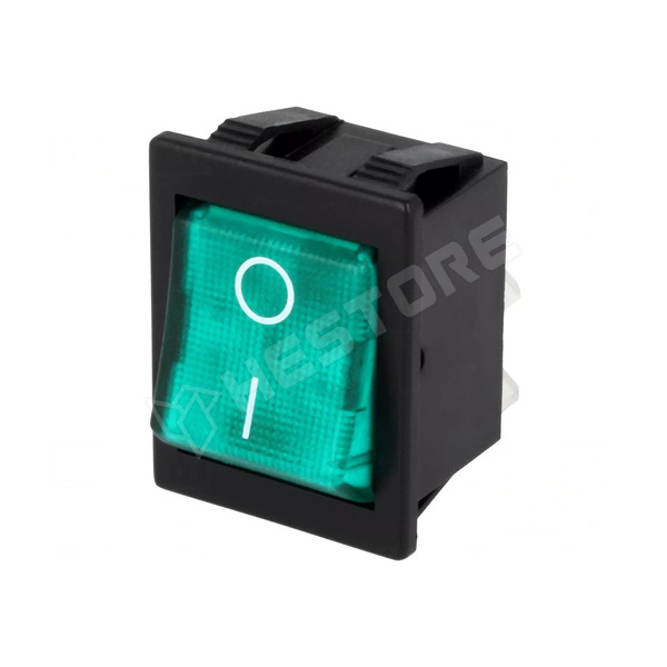 ROCKER kapcsoló, DPST, ON-OFF, 16A/250VAC, zöld, neon, világítós