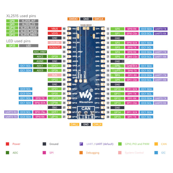 - GPIO header: Compatible with Raspberry Pi Pico pin header