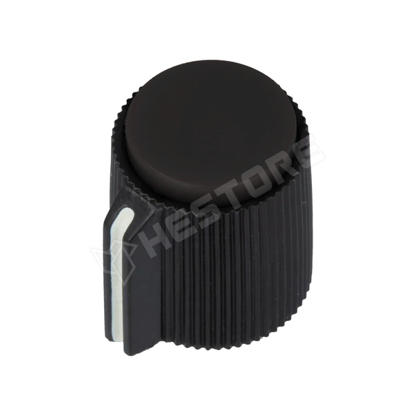 Potenciométer gomb, jelzéssel, műanyag, csavaros rögzítés, Ø6.35mm tengelyre, Ø13x15mm, fekete