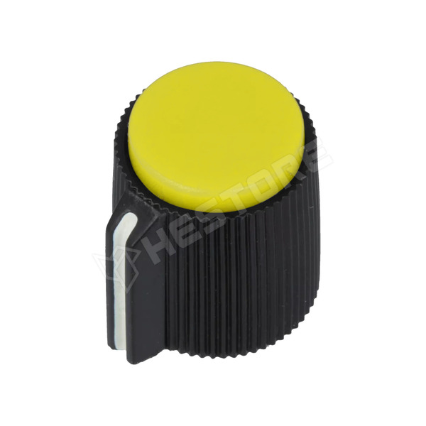 Potenciométer gomb, jelzéssel, műanyag, csavaros rögzítés, Ø6.35mm tengelyre, Ø13x15mm, sárga