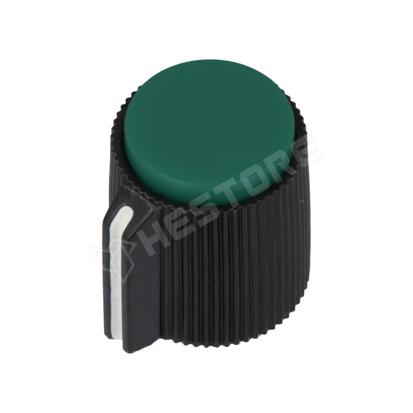 Potenciométer gomb, jelzéssel, műanyag, csavaros rögzítés, Ø6.35mm tengelyre, Ø13x15mm, zöld