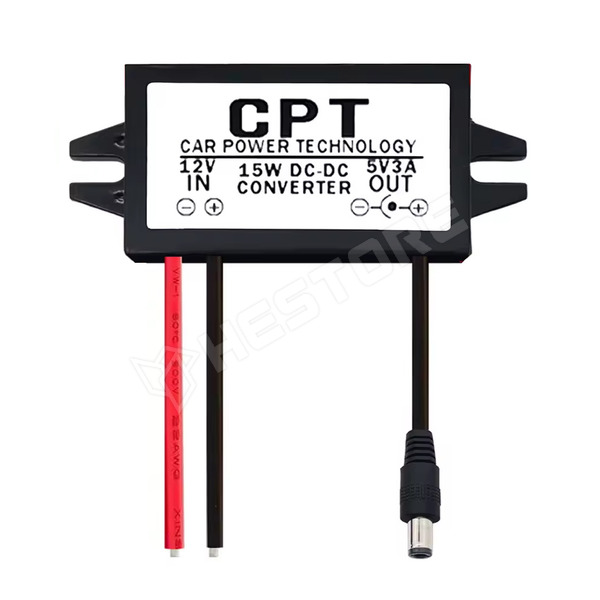 DC-DC step down modul, 7...22V DC to 5V DC, 3A, 15W, vízálló, kimenet: 5.5x2.1mm-es DC dugó