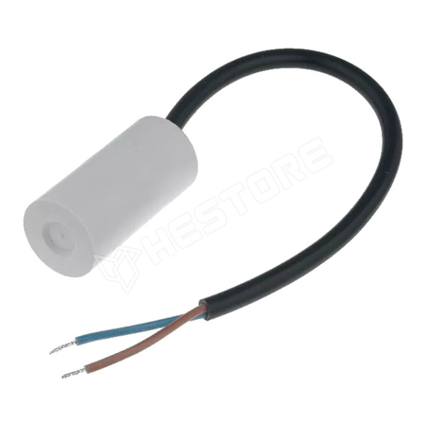 Motor kondenzátor, motorokhoz, üzemi, 5µF, 450V, Ø28x51mm, vezetékek