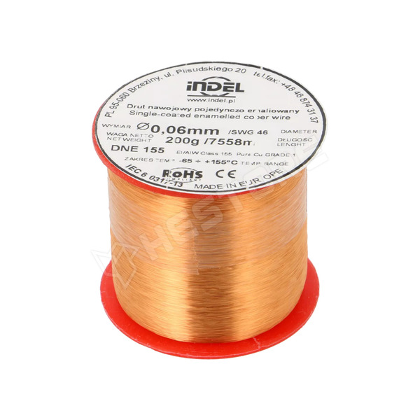 Tekercselő huzal, réz, szimplán zománcozott, 0.06mm, 200g