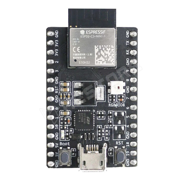 ESP32-C3 alapú fejlesztői modul, 2.4GHz Wi-Fi (802.11 b/g/n), Bluetooth 5, 4MB flash, PCB antenna