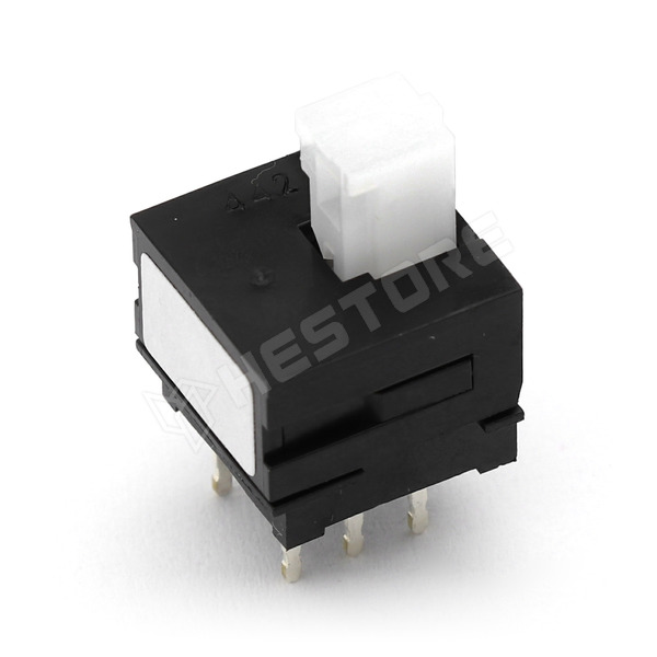 Nyomókapcsoló, ON-ON, DPDT, THT, 13.5mm, 10 x 10 x 8.5mm, 0.1A / 30V DC