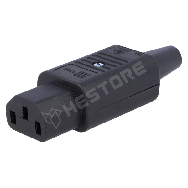AC táp csatlakozó, dugó, anya, 10A, 250V AC, C13 (F), IEC 60320