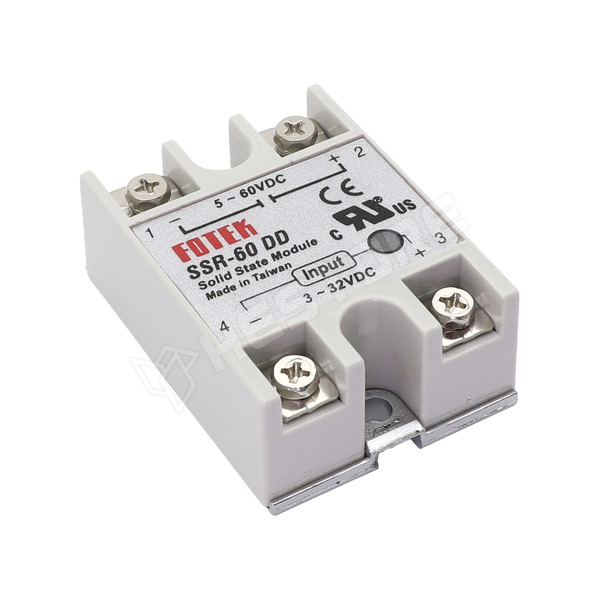 Szilárdtest relé (SSR), 1-fázisú, 60A, 3...32V DC, 5...60V DC, azonnali kapcsolás, csavarható